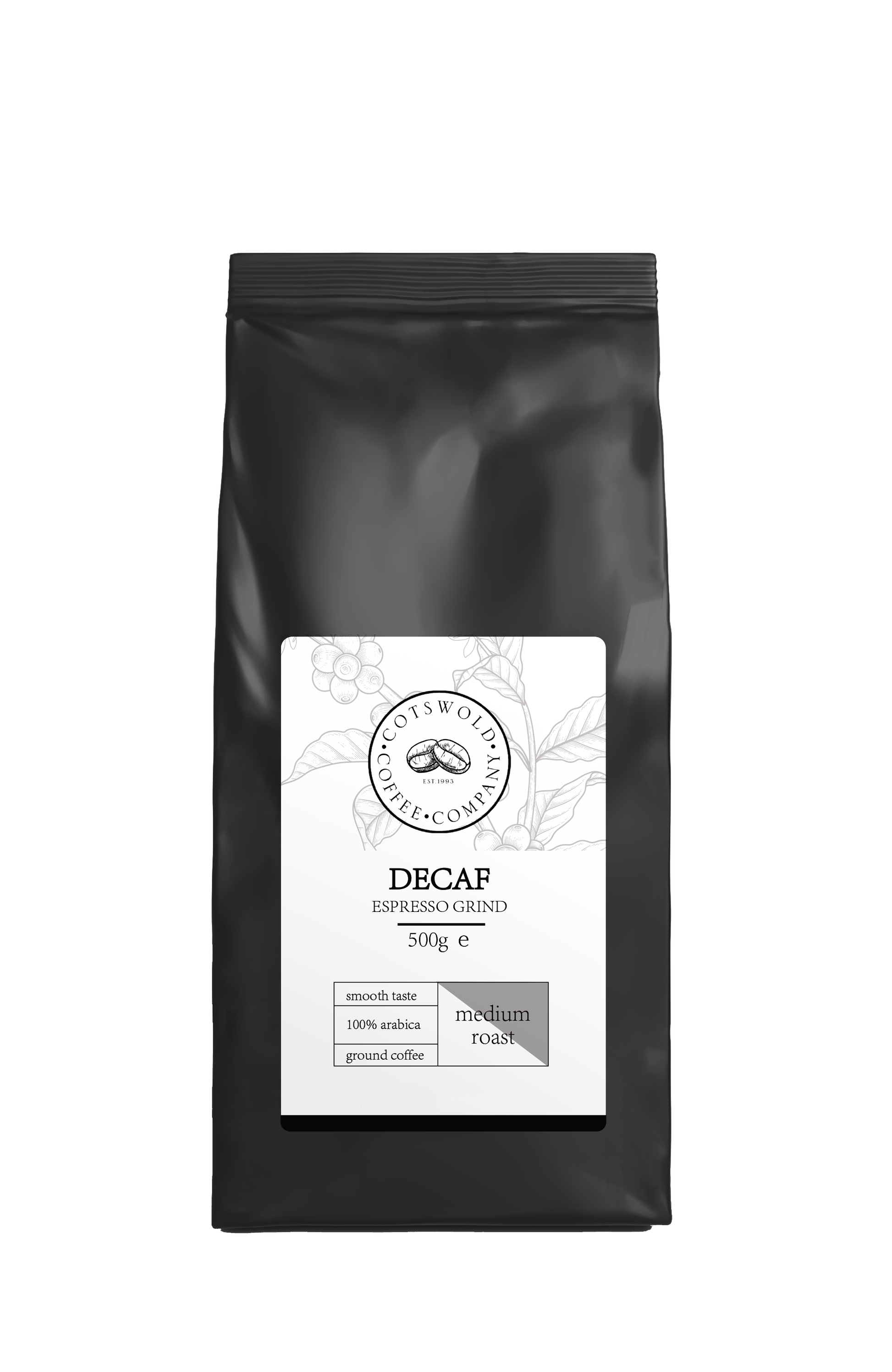 Cotswold's decaffeinated ground coffee. Savour the smooth and fruity flavour. Indulge in a cup of expertly crafted coffee, now decaffeinated for your enjoyment. Finely ground for espresso machines.
