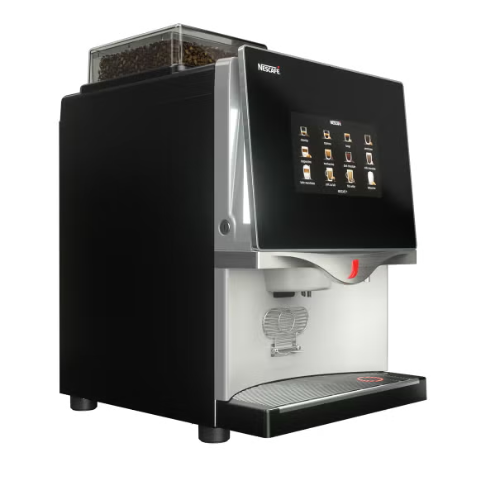 This is an automatic commercial fresh bean-to-cup and fresh milk machine, perfect for use in offices, pubs, hotels, restaurants, education, and any establishment needing a user-friendly solution that produces high-quality drinks. The NESCAFÉ Fusion fresh bean coffee machine boasts a 10-inch touchscreen, allowing for up to 48 drink selections.