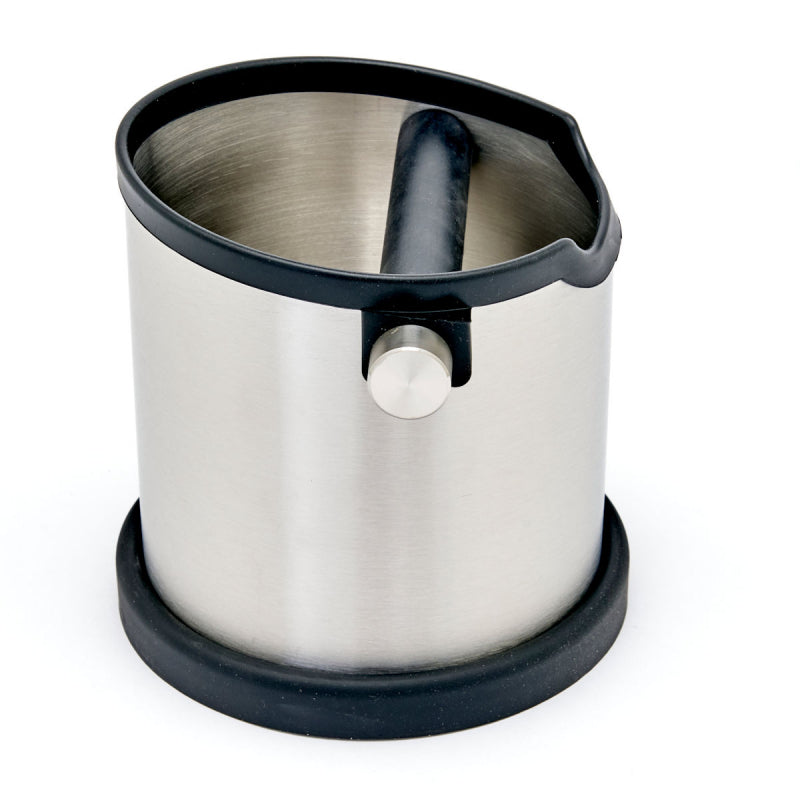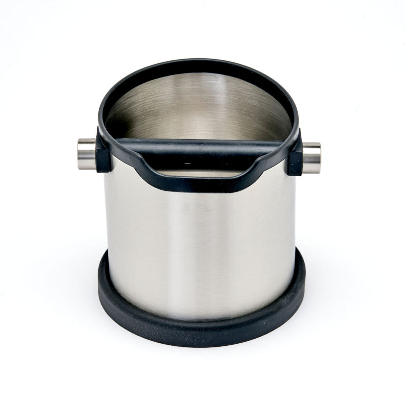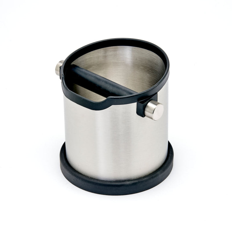 The RhinoWares Deluxe Knock Box is a durable and practical solution for disposing of used coffee grounds with ease. Built from heavy-duty stainless steel, it is designed to withstand the demands of busy cafés while being compact enough for the home barista. With a capacity of 30 to 40 coffee pucks, it helps maintain a tidy workspace during espresso preparation. The knock bar is rubber-coated for noise reduction, fully replaceable, and paired with a rubber base and top gasket to keep operation quiet and stable.
